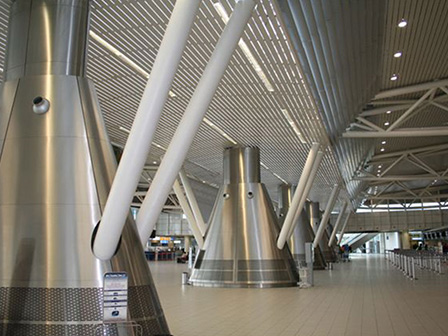 Abgehängte ORIGINAL DOBNER Metalldecke im Außenbereich des  Flughafens Sofia