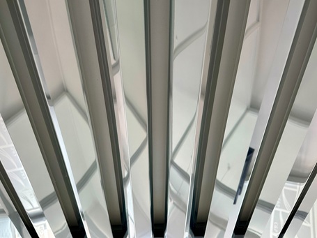 Weiterhin haben Sie die Möglichkeit, verschiedenfarbige MW-Baffles zu mischen. Auch können Sie farbige LED-Strips zwischen den einzelnen Baffles integrieren. Bei sehr langen Räumen, wie z.B. Airport Terminals kann jede zweite Reihen ausgelassen werden und dadurch Kosten bis zu 45 % eingespart werden.