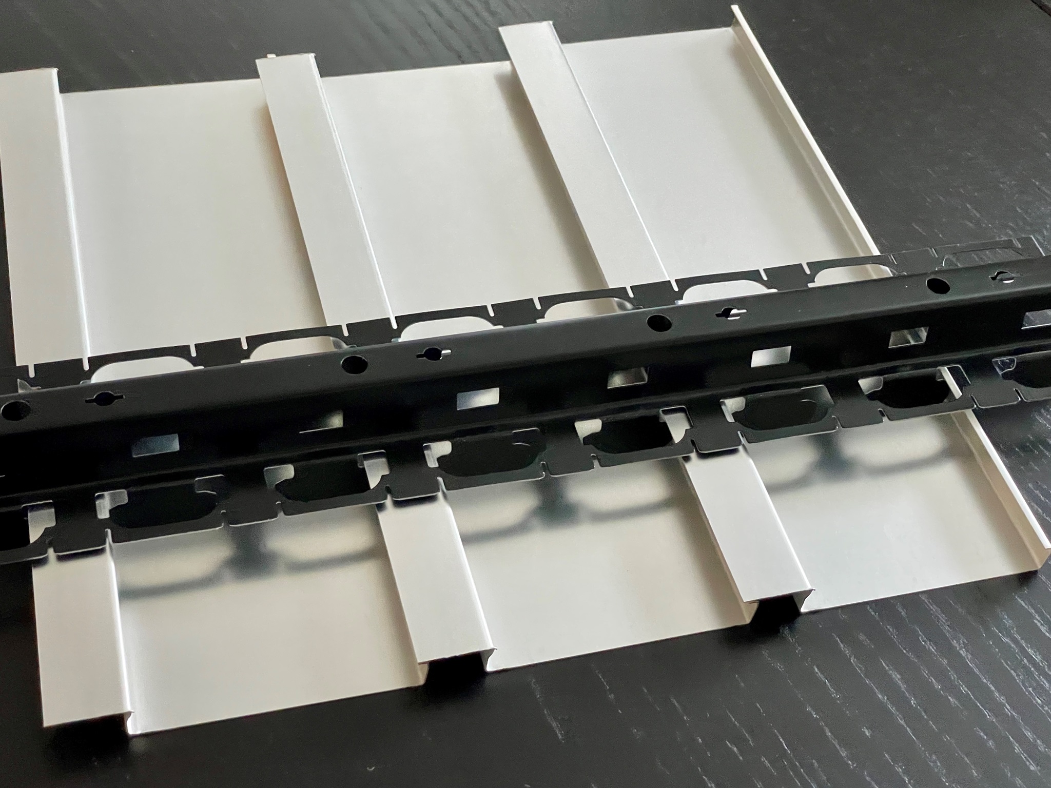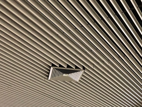 So sieht die abgehängte Metalldecke aus den hochwertigen und superleichten ORIGINAL DOBNER MW-Baffles aus. Diese Metalldecke ist sehr leicht und unkompliziert zu montieren.