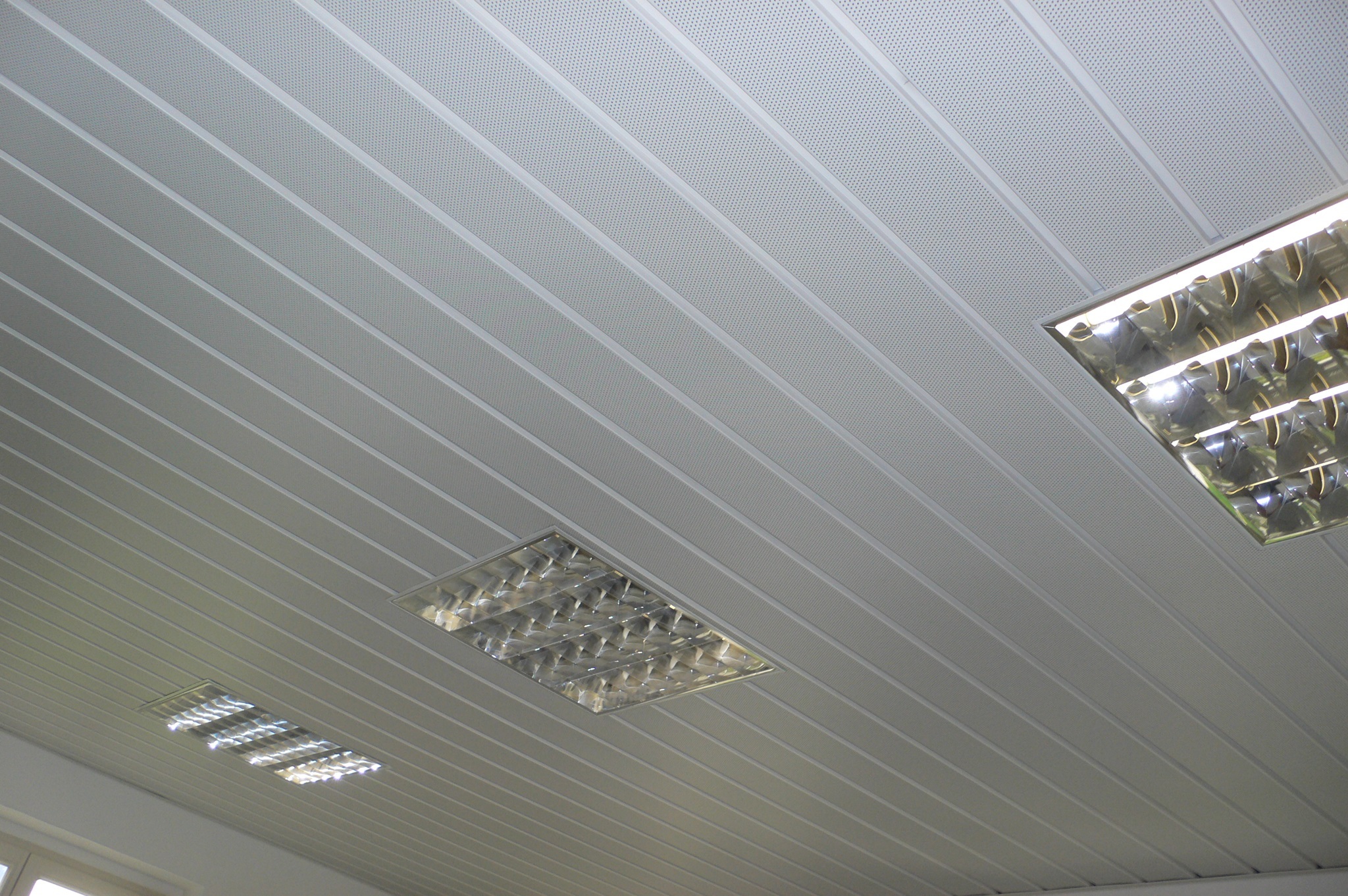 Abgehängte ORIGINAL DOBNER Aluminium-Paneeldecke, System K-150, mit geschlossenen Fugen und perforierter Oberfläche, Modulbreite 150 mm