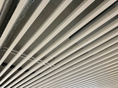 So sieht die abgehängte Metalldecke aus den hochwertigen und superleichten ORIGINAL DOBNER MW-Baffles aus. Diese Metalldecke ist sehr leicht und unkompliziert zu montieren.